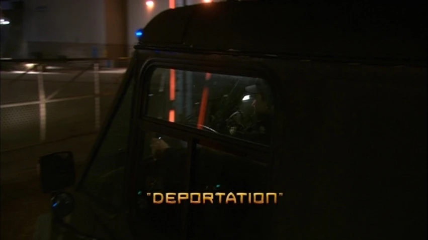 Deportation is the 16th episode of the 5th and final season of Earth: Final Conflict, which aired on February 25, 2002. In the United Kingdom, the episode aired on Paramount Comedy 2 on May 29, 2008.